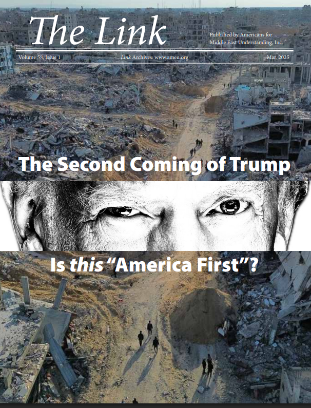 This issue of the Link explores some of the ever-changing implications of Trump’s second coming. We appreciate the patience of our readers and writers, even as the noose of Constitutional crisis draws tighter. We close by celebrating the 20th anniversary of the “Boycott, Divestment, and Sanctions” (BDS) movement, which reminds us that within the law powerful tools exist to combat injustice. The images in this issue commemorate that theme and are reproduced courtesy of the Palestine Poster Project Archive.